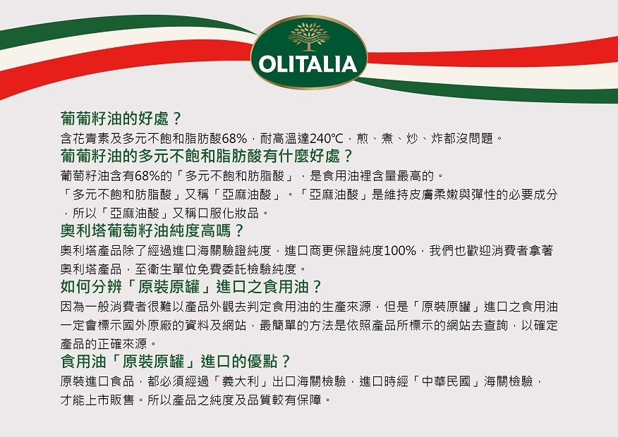 品名 :【奧利塔Olitalia】葡萄籽油