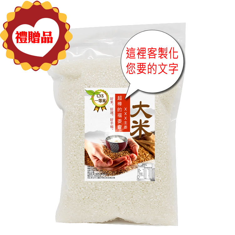 (客製化標籤)台灣在地【CNS一等米】真空包1.2公斤