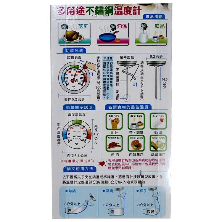 0~300度C【多用途不鏽鋼筆型溫度計】1入