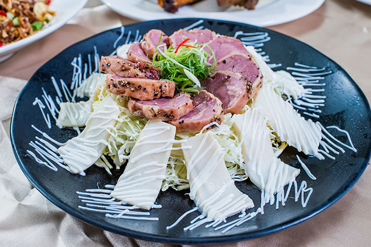 挑選上等的深海魷魚,加上主廚精心調味,口感就像真鮑沙拉! 解凍後直接擺盤宴客。